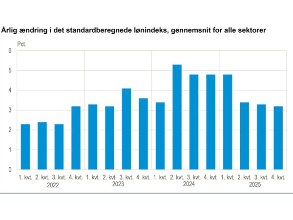 Den seneste opgørelse af lønningerne viser en stigning på tværs af alle sektorer med 3,2 procent i fjerde kvartal 2025 i forhold til fjerde kvartal 2024, oplyser Danmarks Statistik.