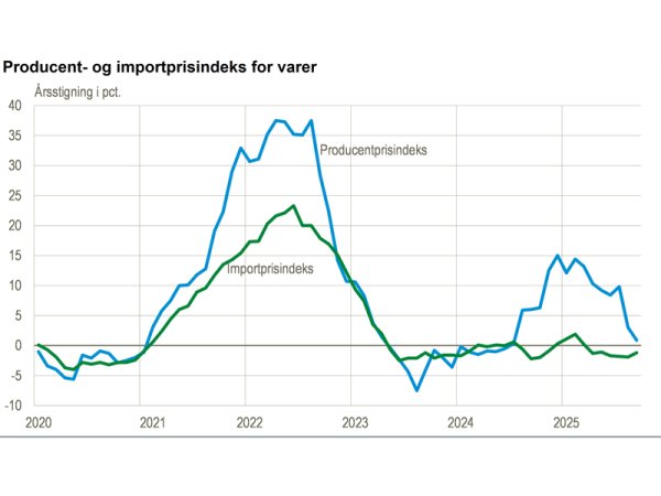 Importprisindeks for varer er i samme periode faldet med 1,2 procent. Forrige måned faldt importprisindekset med 1,9 procent på årsbasis, hovedsageligt drevet af fald i industri og råstofindvinding på henholdsvis 0,8 og 9,5 procent. Derimod trækker energiforsyning indekset op med en stigning på 96,5 procent.